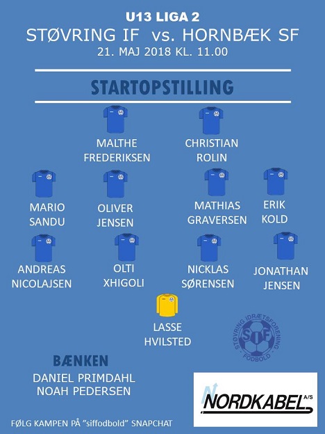 Hos U 13-drengene i Liga 2 er det puljens aktuelle treer og nr. seks, der brager sammen, når Hornbæk SF gæster Støvring. SIF har i deres to seneste kampe tabt til de to hold, der er over dem i tabellen - FS Holstebro og Mariager IK. Gæsterne fra Hornbæk jagter point for at redde eksistensen i rækken.